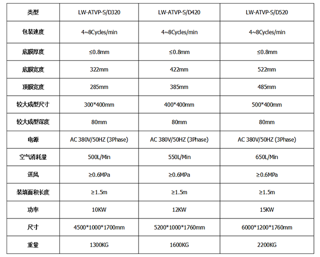三、自動(dòng)拉伸膜成型機(jī)設(shè)備參數(shù):