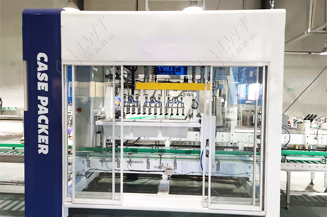 全自動裝箱機(jī)處于包裝流水線的后道,通過吸盤將整列好的瓶子由線體裝入到紙箱當(dāng)中,從而起到操作工便于裝箱目的。