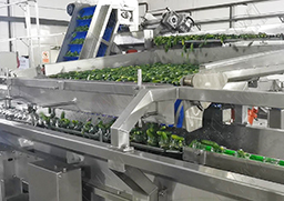 使用自動輸送帶將處理好的蔬菜送入包裝環節。