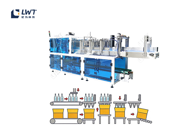 跌落裝箱機是一款專為瓶裝、壺裝、桶裝等產品設計的自動化包裝設備,憑借其高效、靈活、緊湊的特性,成為后道包裝環節的核心設備之一。該設備不僅可實現單機獨立運行,滿足批量生產需求,還能與灌裝機、開箱機、封口機等設備無縫聯機,構建完整的自動化后道包裝生產線,助力企業實現無人化生產管理,提升生產效率與包裝質量穩定性。