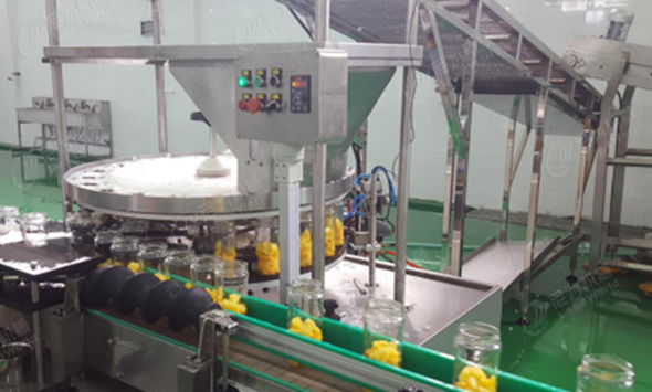 河北水果罐頭生產線項目包含前處理設備(從原料供應至淋堿去皮)—挑選線—自動卸垛機(玻璃瓶)--自動洗瓶機--自動罐裝機—自動碼垛機;該產線由尼為提供整套生產布局;