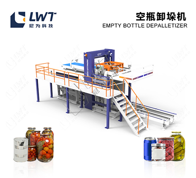 尼為空瓶卸垛機主要適用于整垛的各種玻璃瓶、馬口鐵罐、鋁罐等空罐的自動卸垛拆垛,它將堆疊于棧板上的空罐,由下而上一層層的提升并分層推至輸送道上,可節省大量人力,提高生產效率。